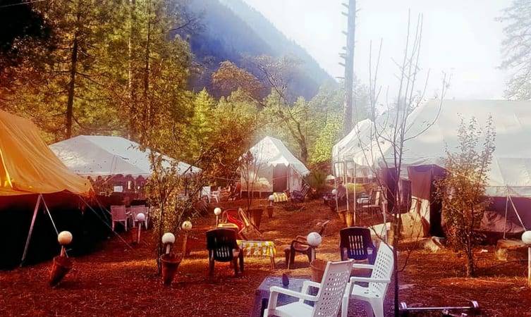 the kasol adventure have accommodation of 19 swiss cottages tents with attached bathroom plus 15 alpine tents with common bathroom . activity ground having activities like rock climbing rippling Burma bridge etc. and also have dj nights and bonfire .